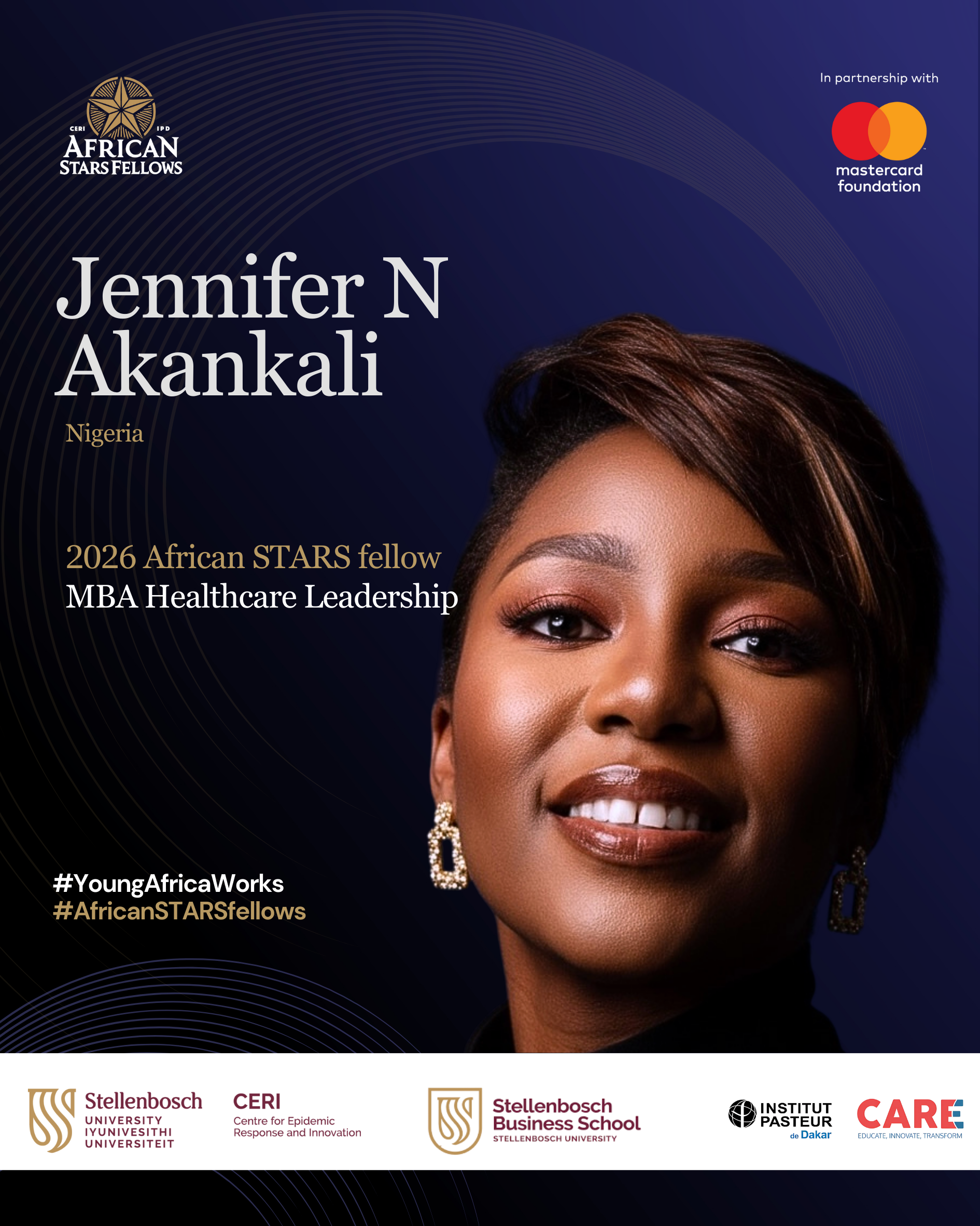 Akankali Nneamaka Jennifer is a Nigerian pharmacist and global health professional dedicated to strengthening Africa’s health systems. Her work spans pharmaceutical research, vaccinology, sustainability, and strategic programme delivery. She integrates science, policy, and systems thinking to drive equitable healthcare solutions. As an African STARS MBA Fellow, she aims to deepen her leadership capacity to advance innovation and expand access to high-quality care across the continent.